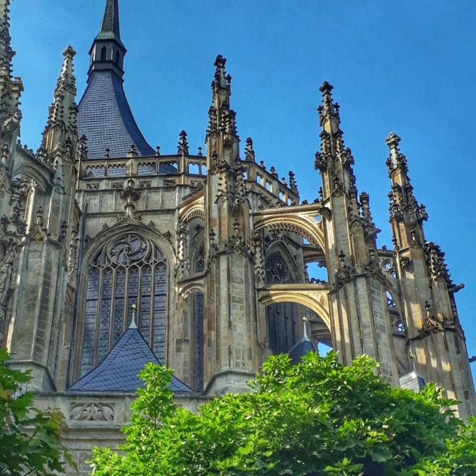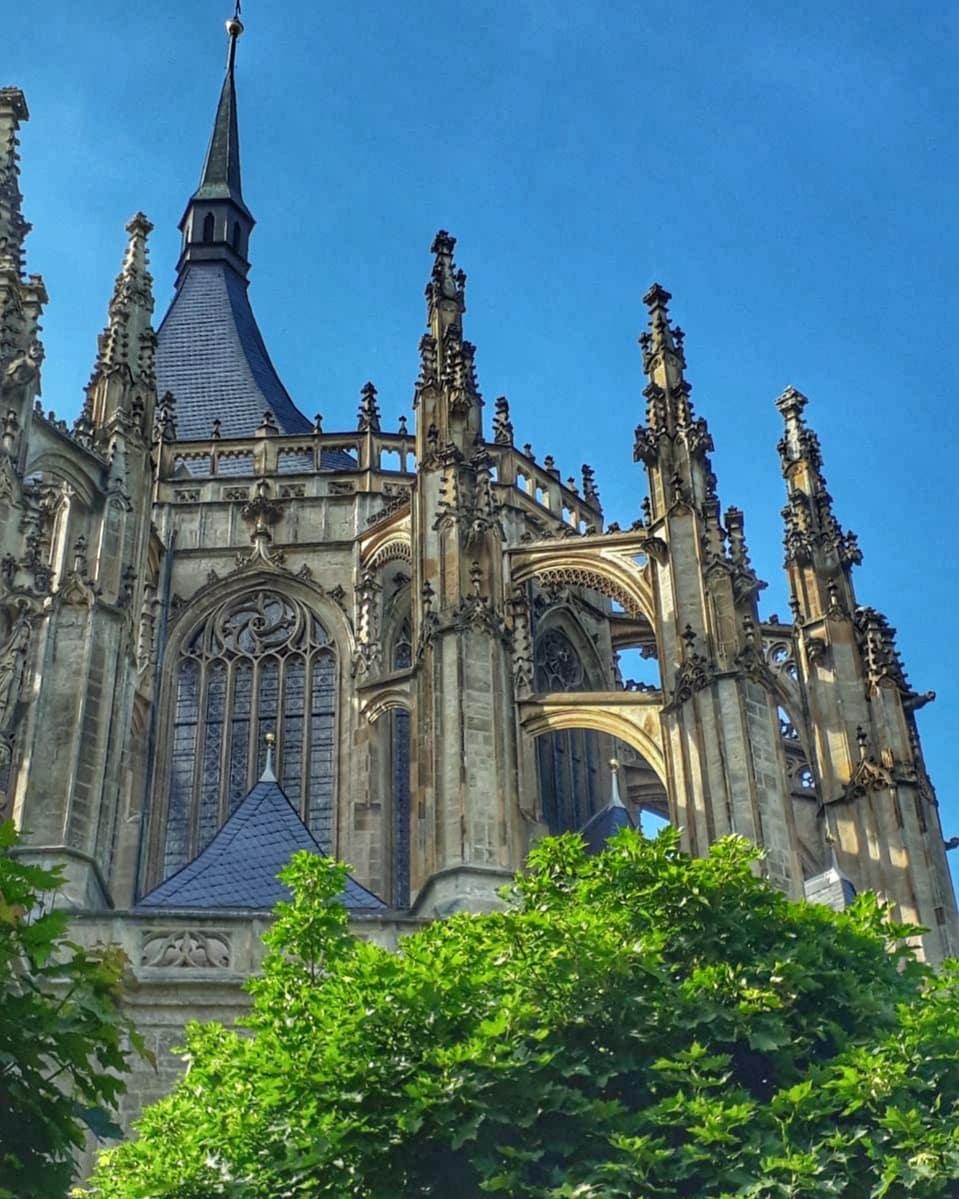 И последняя треть нашего путешествия в прошлое — Собор Святой Варвары. В период рассвета Кутна Гора, соперничавшая с Прагой в богатстве, роскоши, влиянию, могла себе позволить посоревноваться с Прагой и в архитектуре — собор святой Варвары, покровительницы горняков, второй по величине и значимости готический храм Чехии, построен в стиле поздней готики (1388—1547).