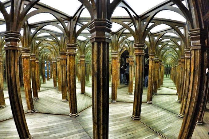 Эта деревянная, довольно правдоподобная копия бывших ворот Вышеграда, называемых Шпичка, построенных в 14 веке. То есть, можно сначала посмотреть, как выглядели древние ворота, которых уже не осталось, а потом внутри порезвиться в зеркальном лабиринте. Лабиринт маленький, не бойтесь заблудиться.