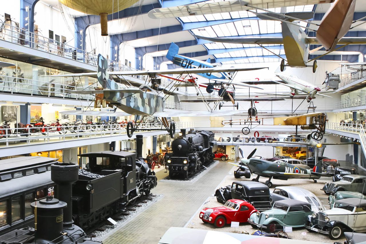 Интересная экспозиция — «Архитектура, строительство и дизайн». Вы окажетесь в уличном пространстве в стиле сецессе или кубизма с лавочкой, фонарем, фасадами, сможете заглянуть в рабочие кабинеты архитекторов с оригинальной мебелью. И, конечно, большой зал с историческими машинками, паровозами, велосипедами и самолётами.