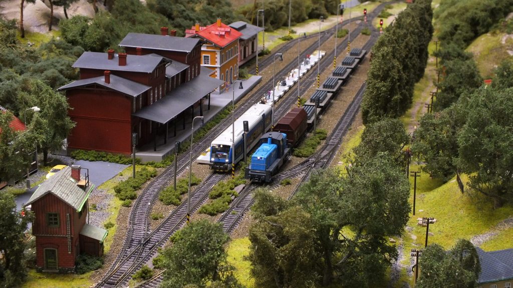 Железнодорожное королевство – это целый маленький мир с городами, деревнями, лесами и сотнями метров дороги, по которой двигаются локомотивы. По рельсам бегут поезда, на вокзалах и маленьких станциях их ждут пассажиры, по дорогам города двигаются маленькие автомобили, а в парковых зонах в тени деревьев играют дети – всю эту масштабную миниатюру можно разглядывать очень долго.