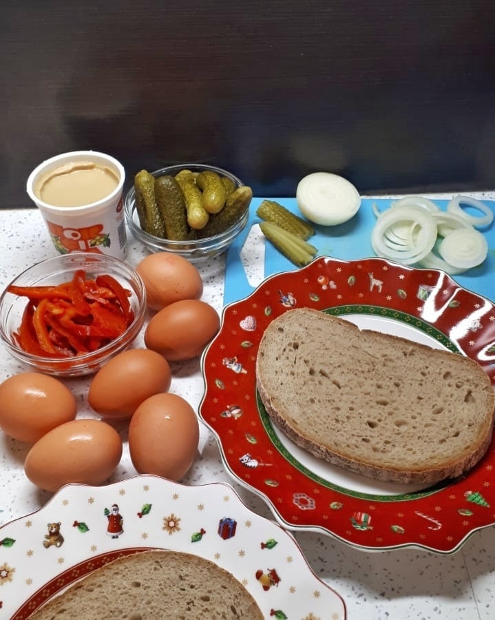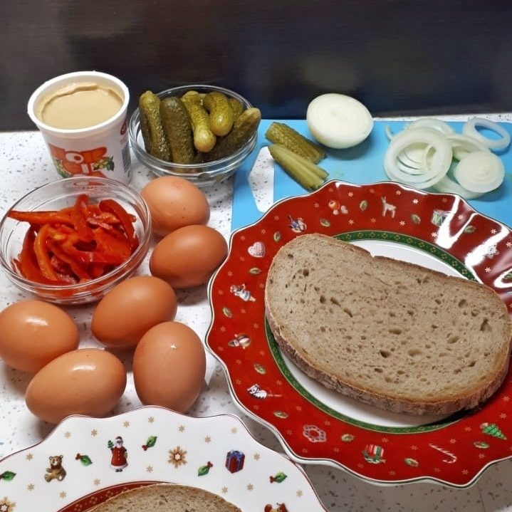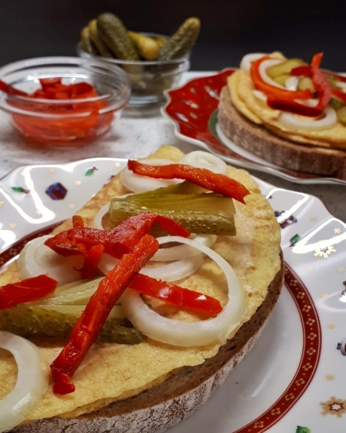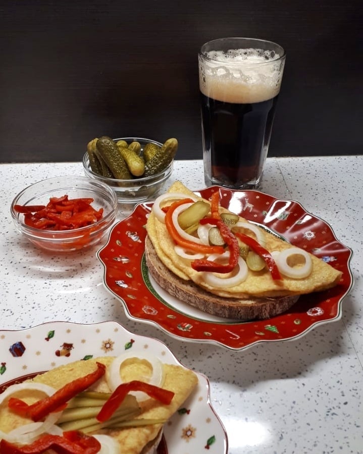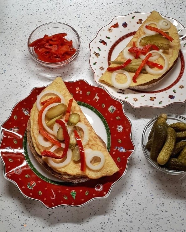 Если точнее, это яичный омлет на ломтике хлеба с горчицей, луком, маринованным огурцом и кетчупом. Уже несколько десятков лет его можно найти под названием «smaženka» (жаренка). Готовим не с запасом, а столько, сколько нужно, съедаем и не оставляем «на потом».